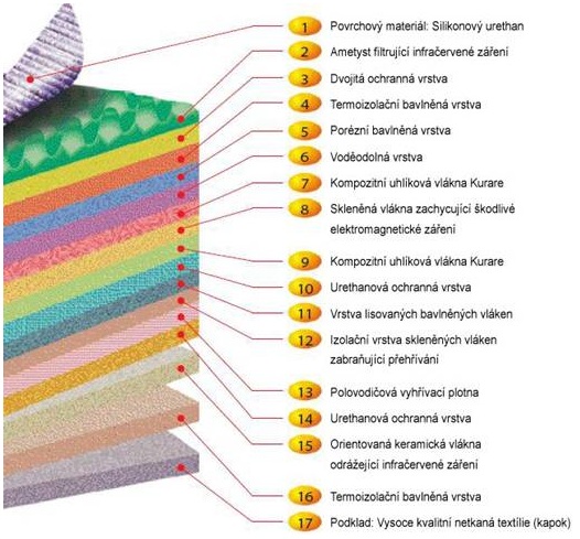 Matrace RichWay Amethyst BioMat™ je vyrobena z uhlíkové keramiky japonského výrobce Kurare (č. patentu 1386560).